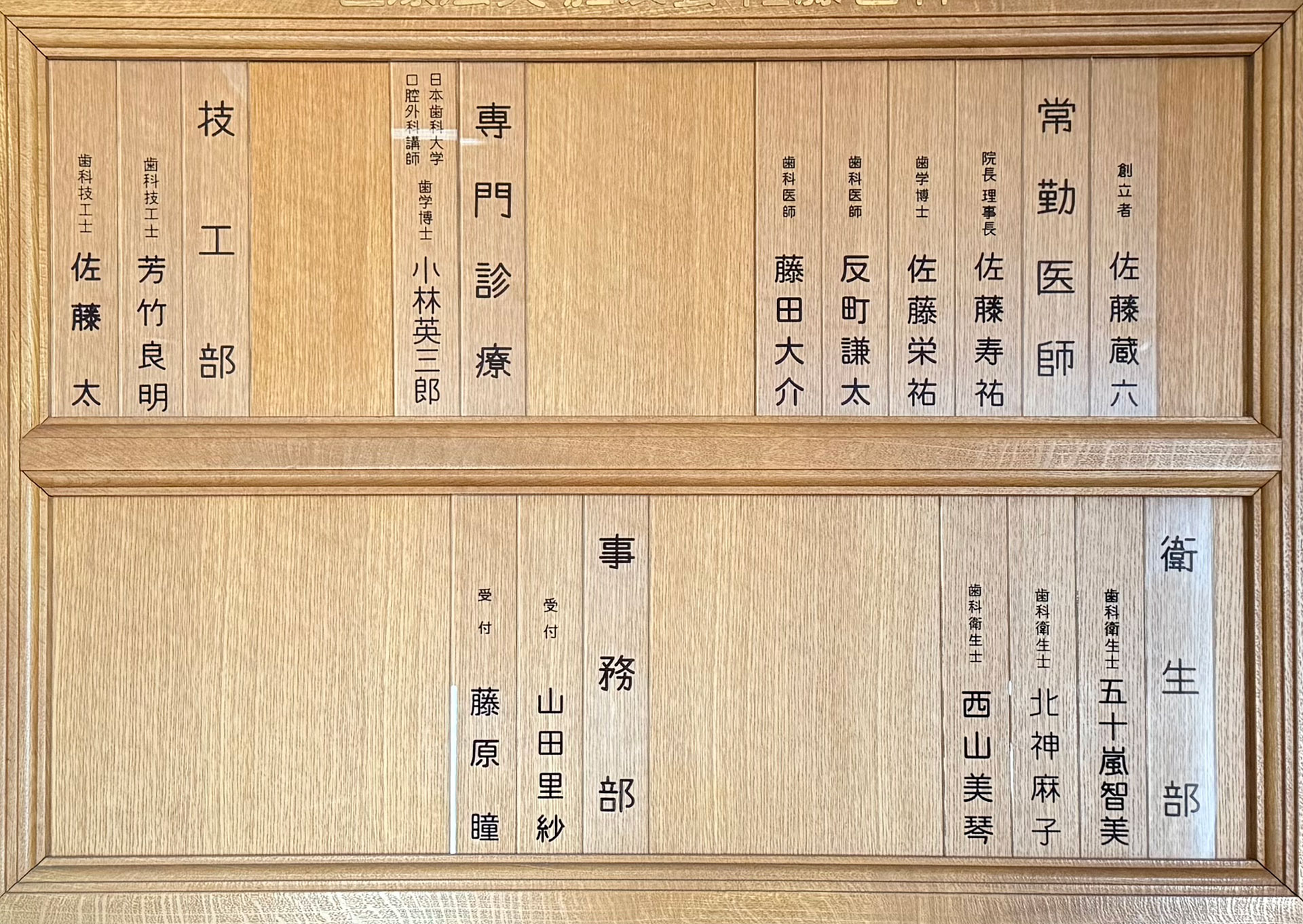 スタッフ紹介 院長 佐藤 寿祐 腔友会会長 佐藤 栄祐 自慢のスタッフ紹介 地域密着型の親しみのある歯科医として、三条のまちなかで皆様が健康な歯で、いつもの食生活が送れるように、手助けさせていただいています。これからも地域の皆様に信頼され、足を運んでいただけるように、最新の歯科情報と確かな技術で皆様の歯をサポートさせていただきます
